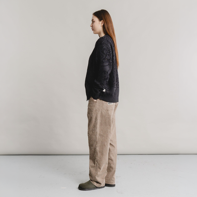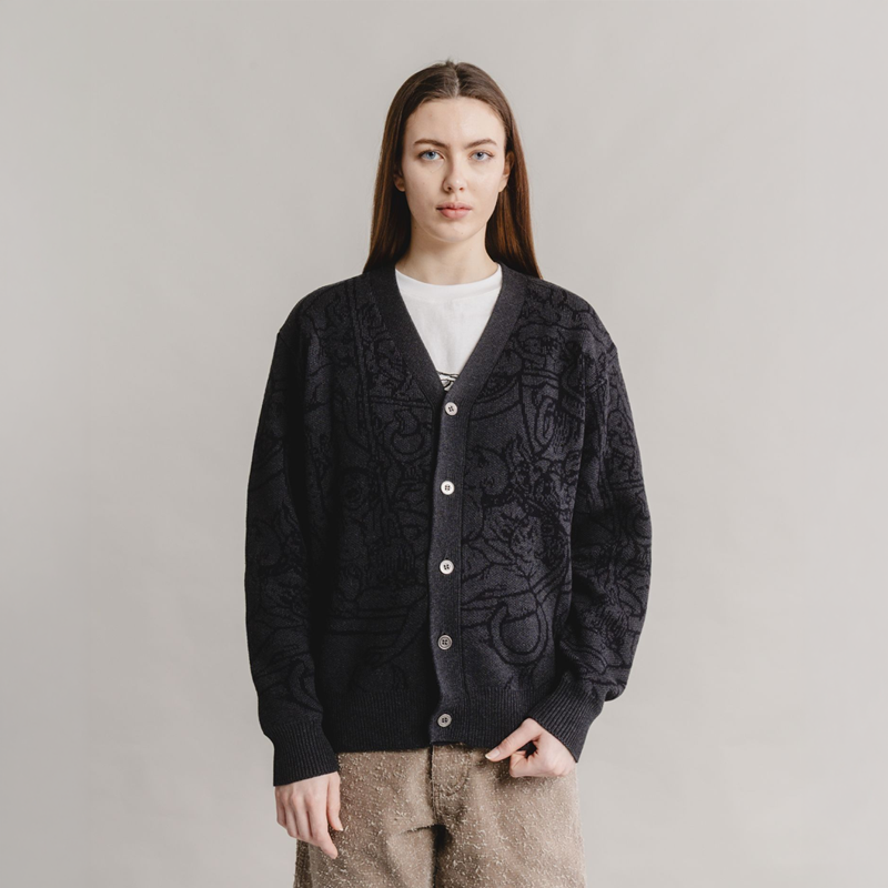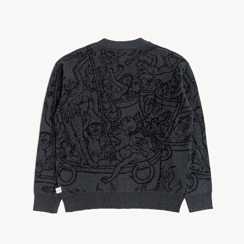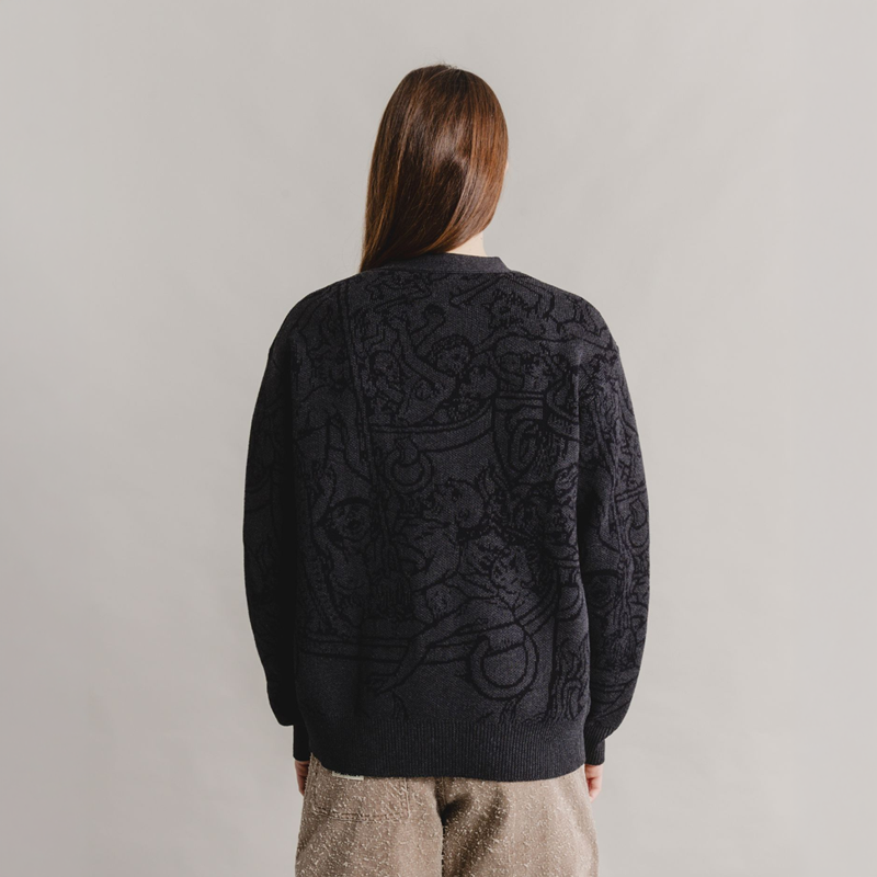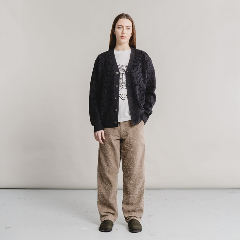 Dominic Owen and Jasper Dunk founded HERESY in 2012, in Peckham, London. Now, based on South England, HERESY produces seasonal clothing collections heavily influenced by the research and exploration of Folklore. Since the start of the company, HERESY has been operating in an ethically conscious manner. Their garments feature bold graphics and illustrations, core to the brand’s visual identity, including hand-drawn sketches, airbrushed visuals, and mosaic-like collages. As well as clothing they make handmade art objects, produce events, program music projects, and print small-press publications.