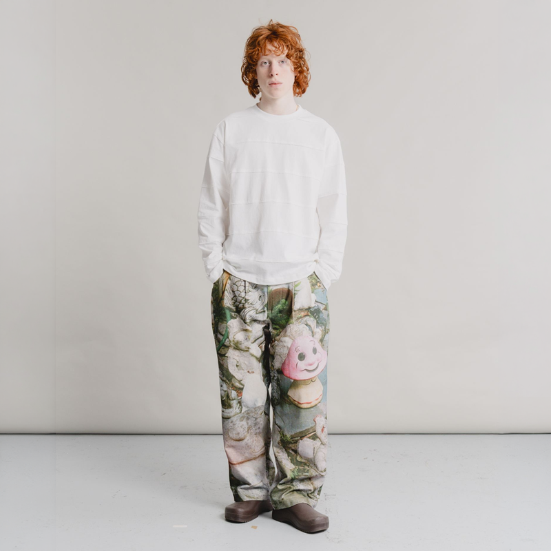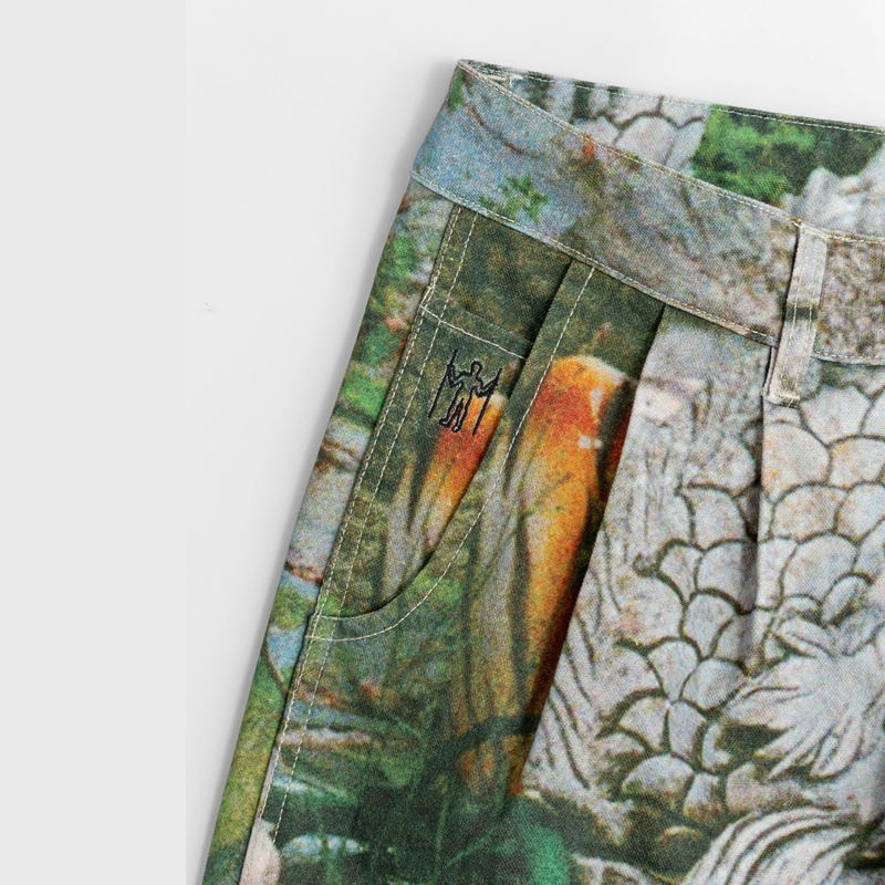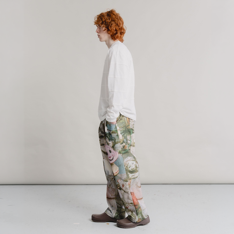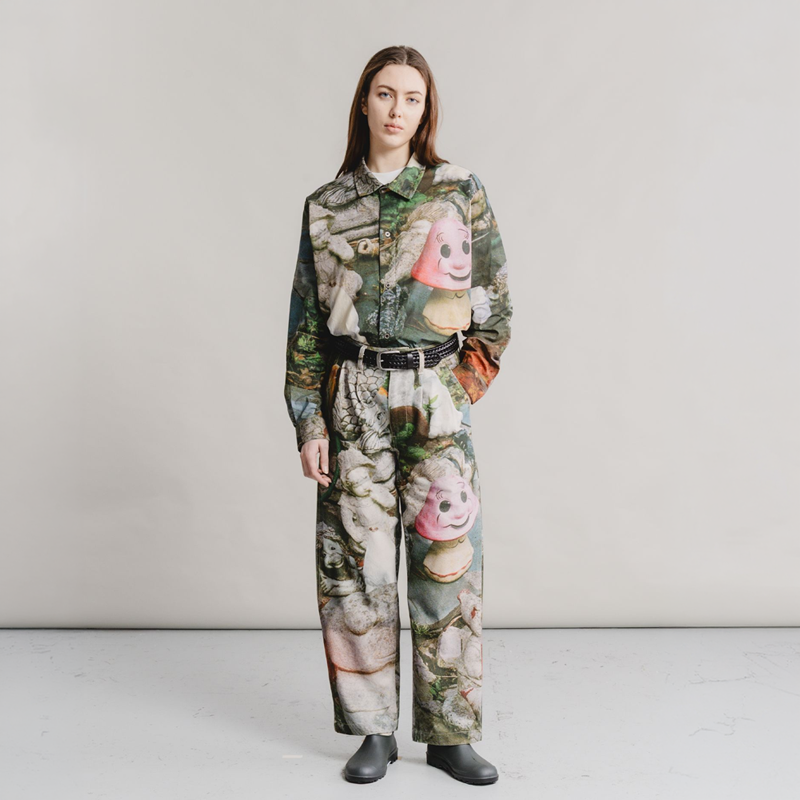 Dominic Owen and Jasper Dunk founded HERESY in 2012, in Peckham, London. Now, based on South England, HERESY produces seasonal clothing collections heavily influenced by the research and exploration of Folklore. Since the start of the company, HERESY has been operating in an ethically conscious manner. Their garments feature bold graphics and illustrations, core to the brand’s visual identity, including hand-drawn sketches, airbrushed visuals, and mosaic-like collages. As well as clothing they make handmade art objects, produce events, program music projects, and print small-press publications.