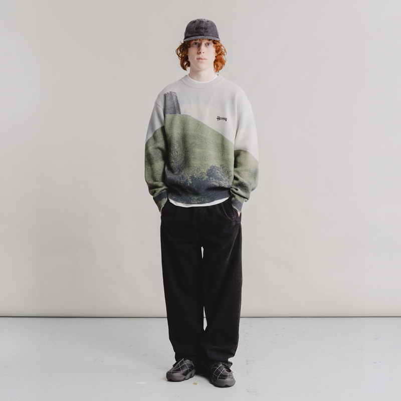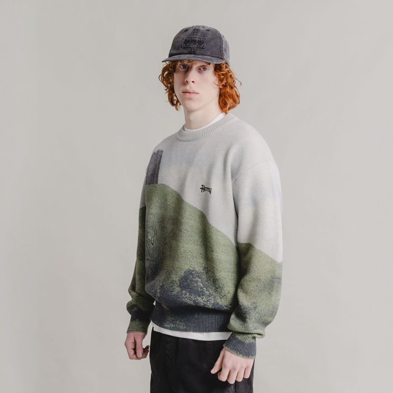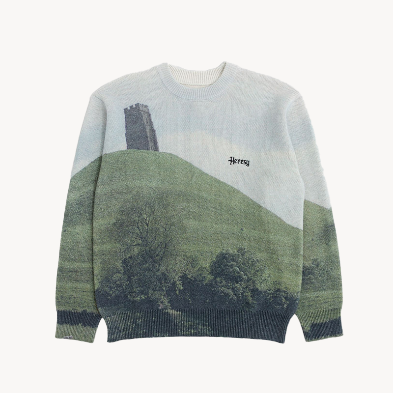 Dominic Owen and Jasper Dunk founded HERESY in 2012, in Peckham, London. Now, based on South England, HERESY produces seasonal clothing collections heavily influenced by the research and exploration of Folklore. Since the start of the company, HERESY has been operating in an ethically conscious manner. Their garments feature bold graphics and illustrations, core to the brand’s visual identity, including hand-drawn sketches, airbrushed visuals, and mosaic-like collages. As well as clothing they make handmade art objects, produce events, program music projects, and print small-press publications.