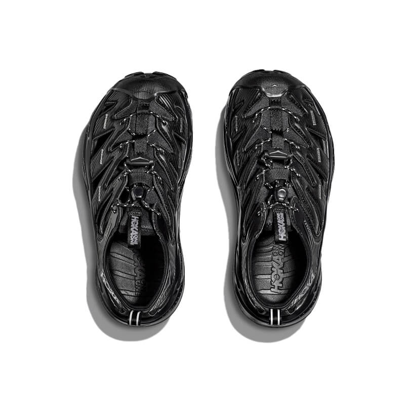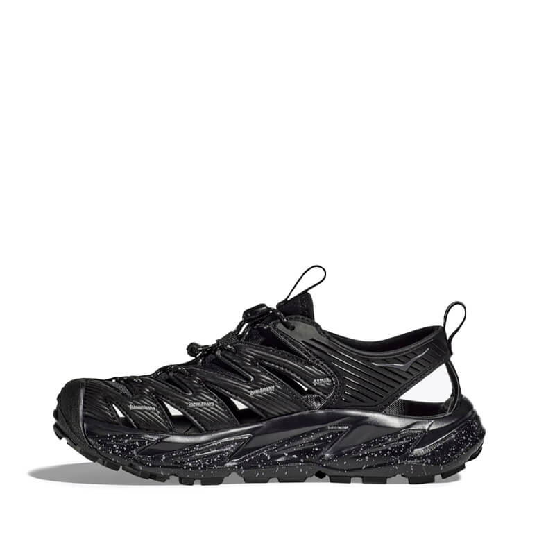 HOKA Hopara – Black / Castlerock: A true outdoor explorer, the Hopara easily navigates through any terrain — wet or dry. Designed through the HOKA lens, this shoe will blow other mountain sandals out of the water. The Hopara has a synthetic upper with strategic cutouts for drainage while still providing a secure lockdown. It includes a neoprene collar for flexibility and comfort plus a quick-lace system. Providing a responsive yet cushioned feel thanks to a rubberized EVA midsole, the Hopara also features a rubberized toe cap for protection and a sticky rubber outsole for traction in a variety of conditions. Add in 4mm multidirectional lugs for even more grip and the Hopara is your key to adventure.
