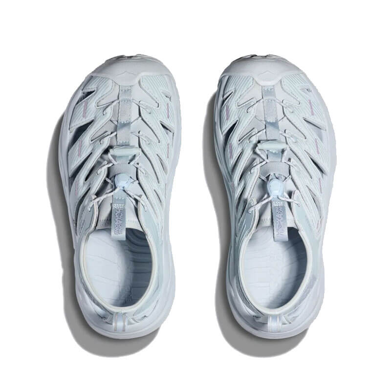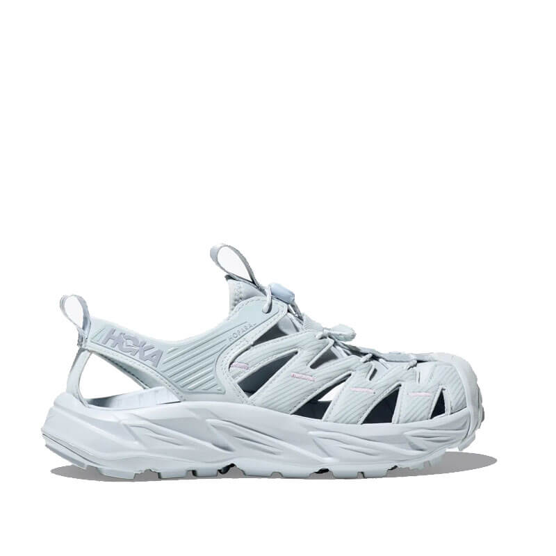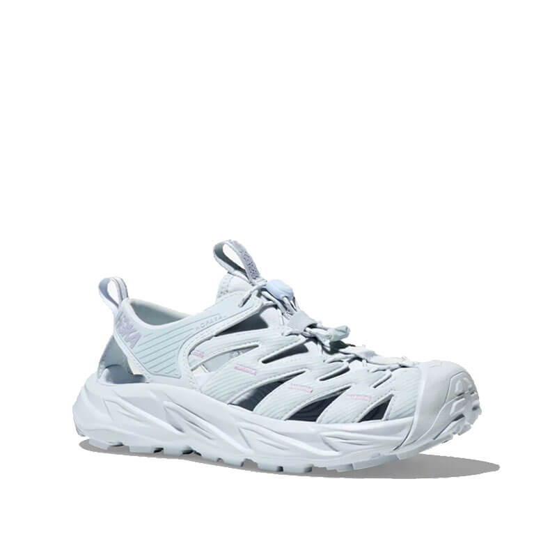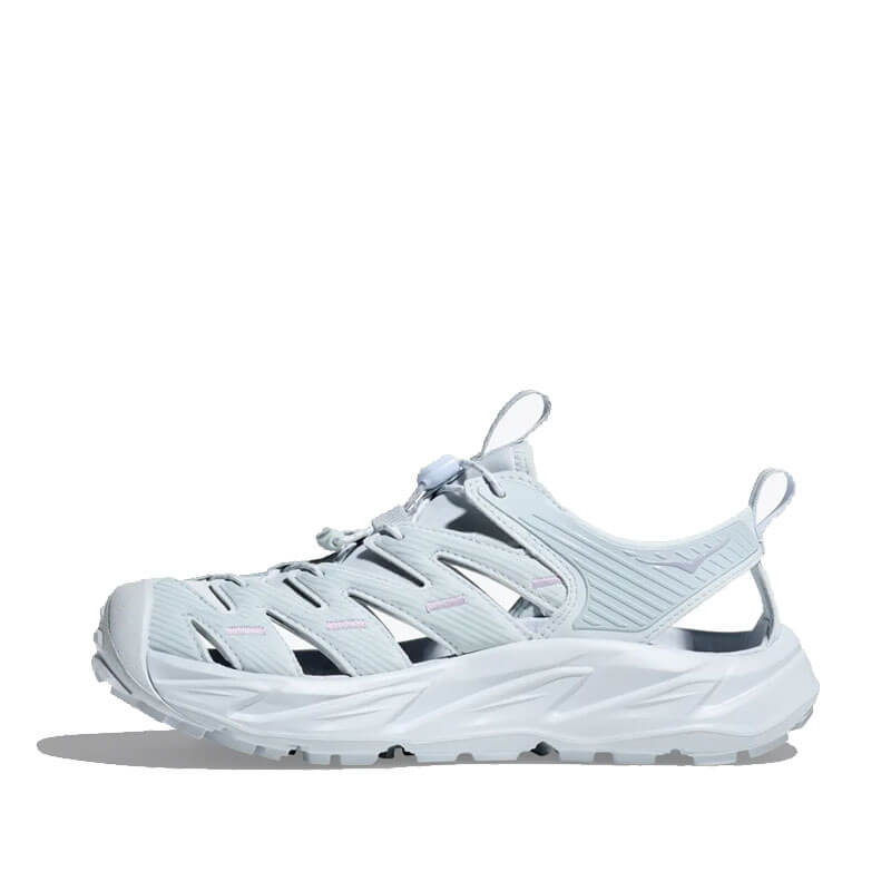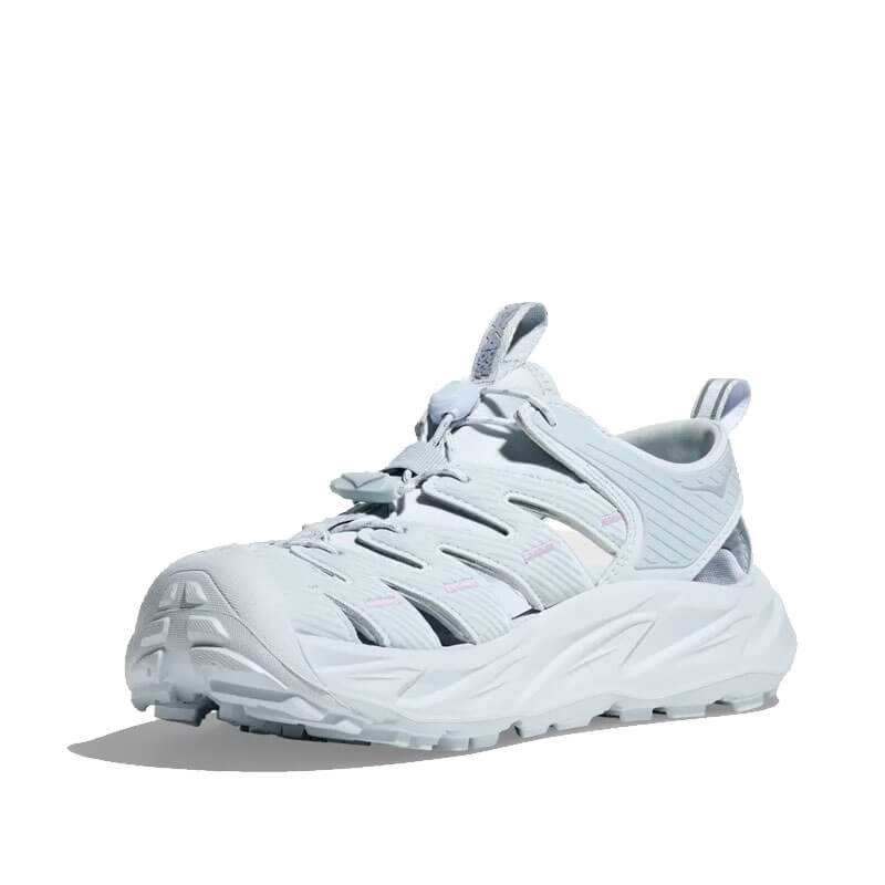 HOKA Hopara – Illusion / Illusion: A true outdoor explorer, the Hopara easily navigates through any terrain — wet or dry. Designed through the HOKA lens, this shoe will blow other mountain sandals out of the water. The Hopara has a synthetic upper with strategic cutouts for drainage while still providing a secure lockdown. It includes a neoprene collar for flexibility and comfort plus a quick-lace system. Providing a responsive yet cushioned feel thanks to a rubberized EVA midsole, the Hopara also features a rubberized toe cap for protection and a sticky rubber outsole for traction in a variety of conditions. Add in 4mm multidirectional lugs for even more grip and the Hopara is your key to adventure.