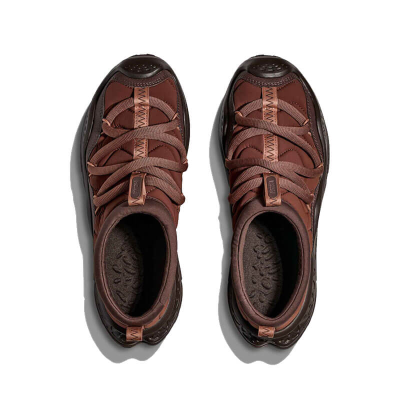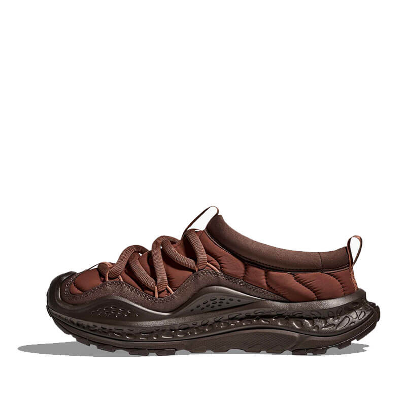 HOKA Ora Primo – Mineral Brown / Cast Iron: Up your downtime. Our cutting-edge Ora Primo design cues to deliver the boldest expression of our Ora franchise to-date. A futuristic silhouette that delivers the same post-run relief as its predecessor, the new Ora Primo has been elevated with a soft knit collar, elastic lace system and insulatedpuff upper for that seasonless, slip-on comfort you crave.