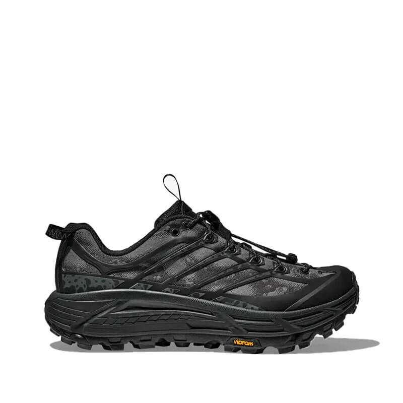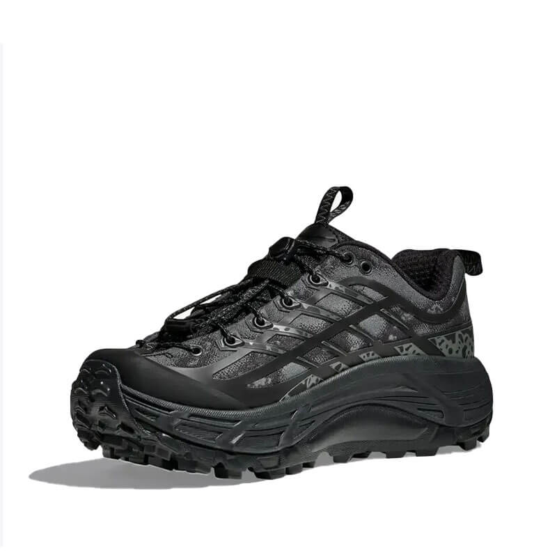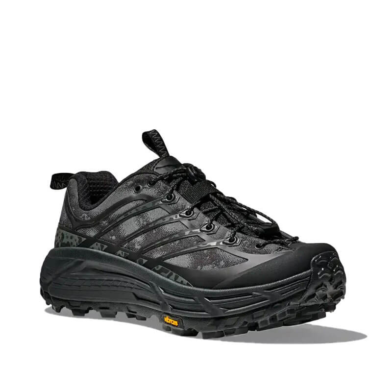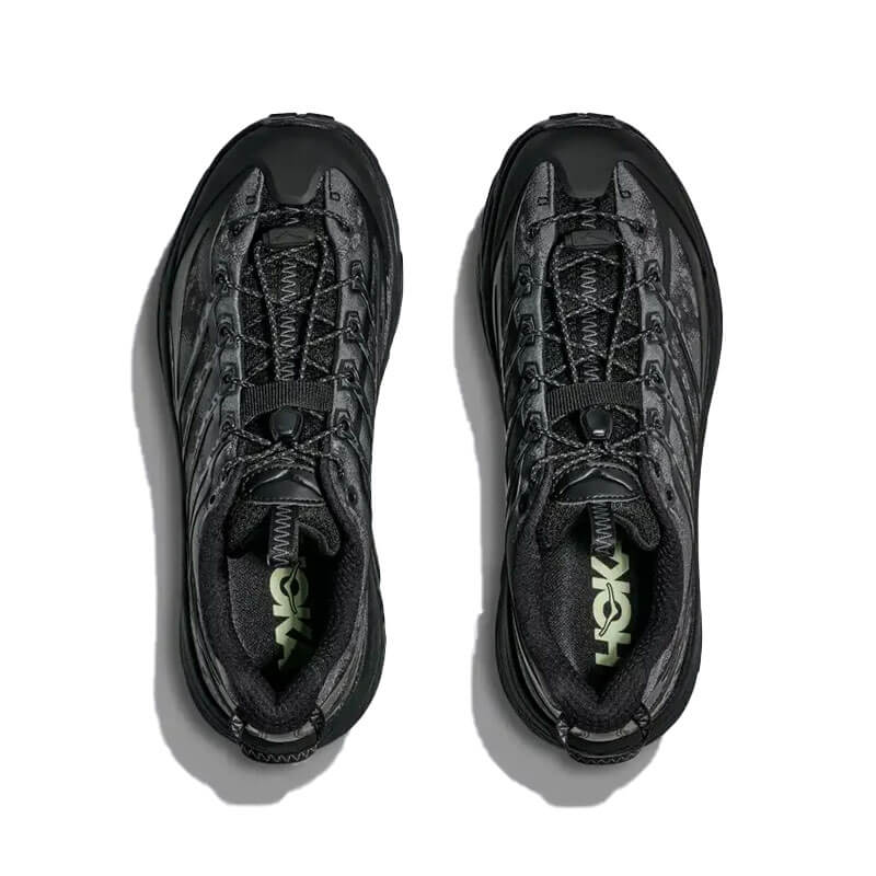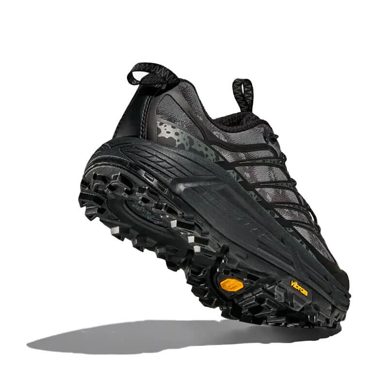 Delivered for the last Spring25 collection, this HOKA Stealth/Tech Mafate Three2 – Black / Carbon Black features: