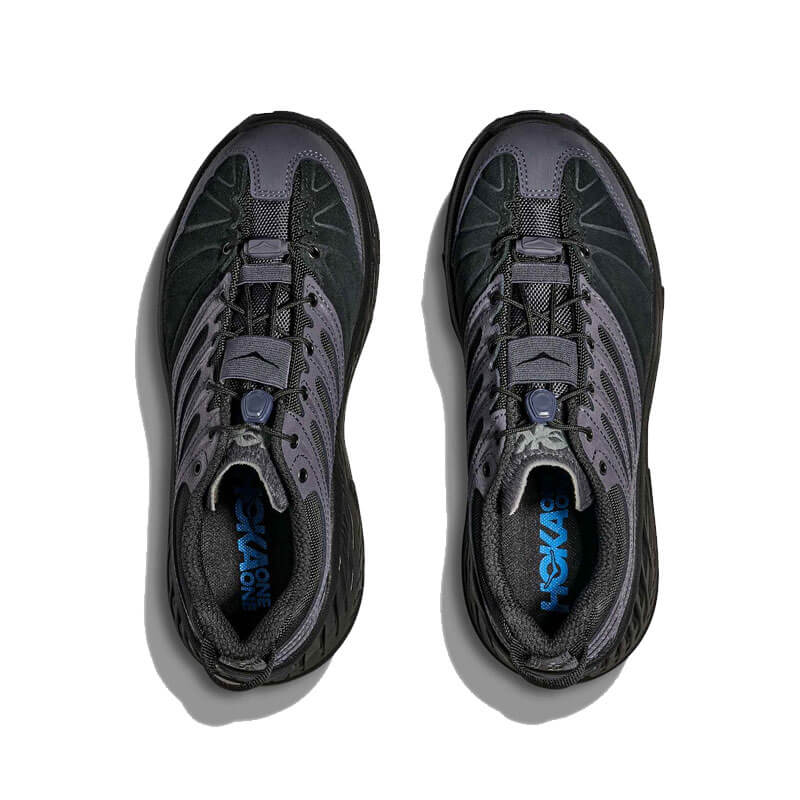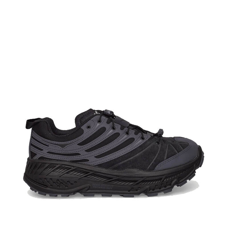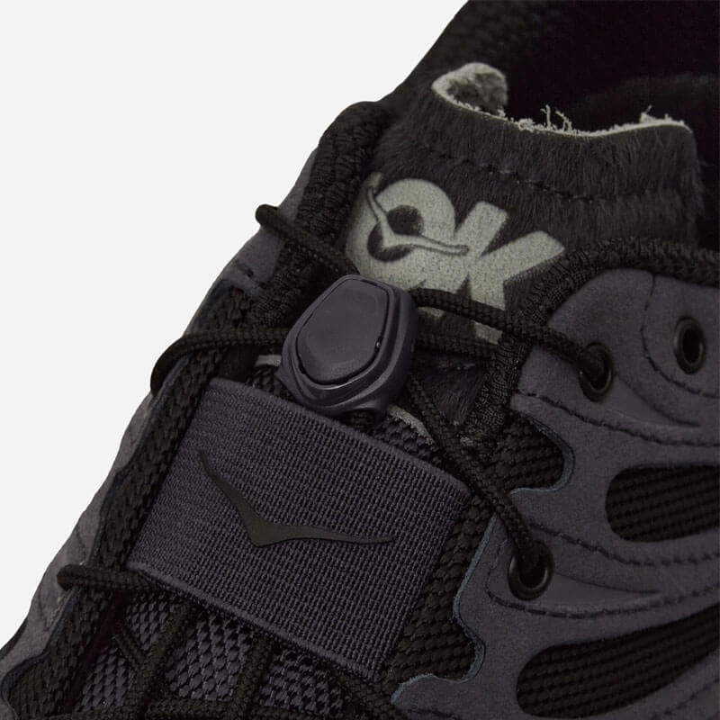 HOKA Stinson EVO OG Elite Terrain System – Black / Black: Crafted to reflect HOKA’s origins in the French Alps, this season’s Elite Terrain System Stinson Evo OG is a deep cut from our trail archives, remixed in a traditional mountain style. A durable CORDURA® upper, suede and leather details and metal eyelets nod to the storied peaks of our birthplace while the original rockered geometry, cushioning and design notes root this model in performance.