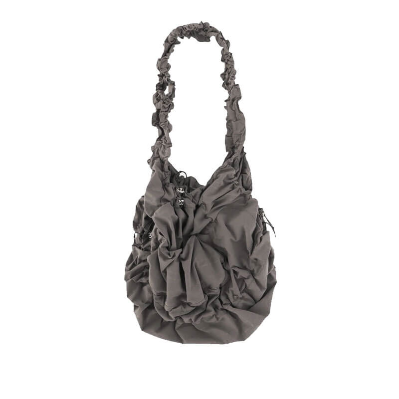 _J.L-A.L_ Mica Bag – Graphite: Shoulder bag crafted in a soft micro perforated shirting fabric. The Mica bag features a touched silhouette with adjustable straps and pocket entry.