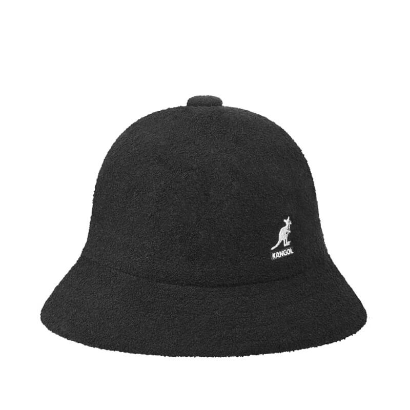 KANGOL Bermuda Casual Hat – Black: Bucket hat with bell-like shape. The Bermuda Casual is an Iconic style by Kangol. The Bermuda Casual is an original icon that’s been making an unforgettable impression on the beach and the dancefloor alike for generations. The Casual shape in Kangol proprietary textured Bermuda material is a classic Kangol® style with an embroidered kangaroo logo on the front.