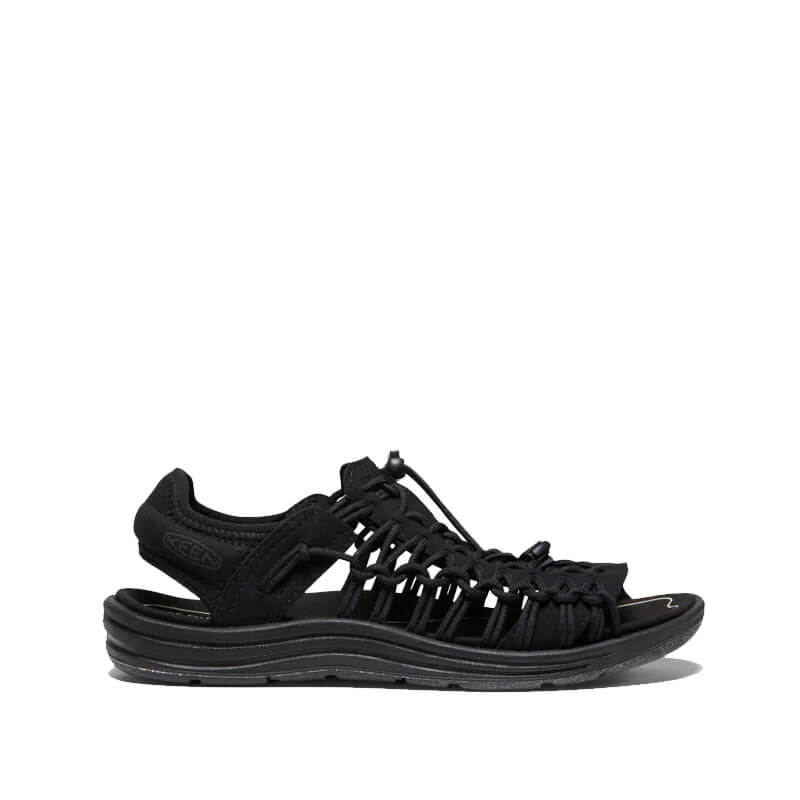 KEEN Uneek II OT Sandals – Black: The Keen’s original two-cord sandal in a slip-on version. Adapts to your foot for unending comfort with a breathable knit upper made from recycled P.E.T. plastic bottles. This KEEN Uneek II OT Sandals – Black features:
