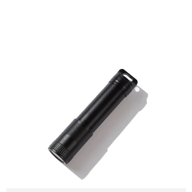 MAHARISHI 9737 Microtorch – Black: A compact keyring pocket torch, finished in a Maharishi branded, black titanium coating. Powered with a single AAA battery, the high power 50 lumen beam has a run time of up to 1.5 hours. Included in the accessories range of the British brand, this Microtorch features: