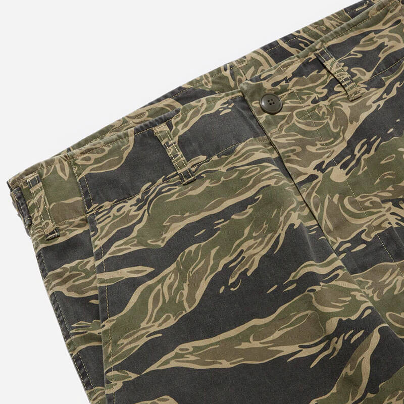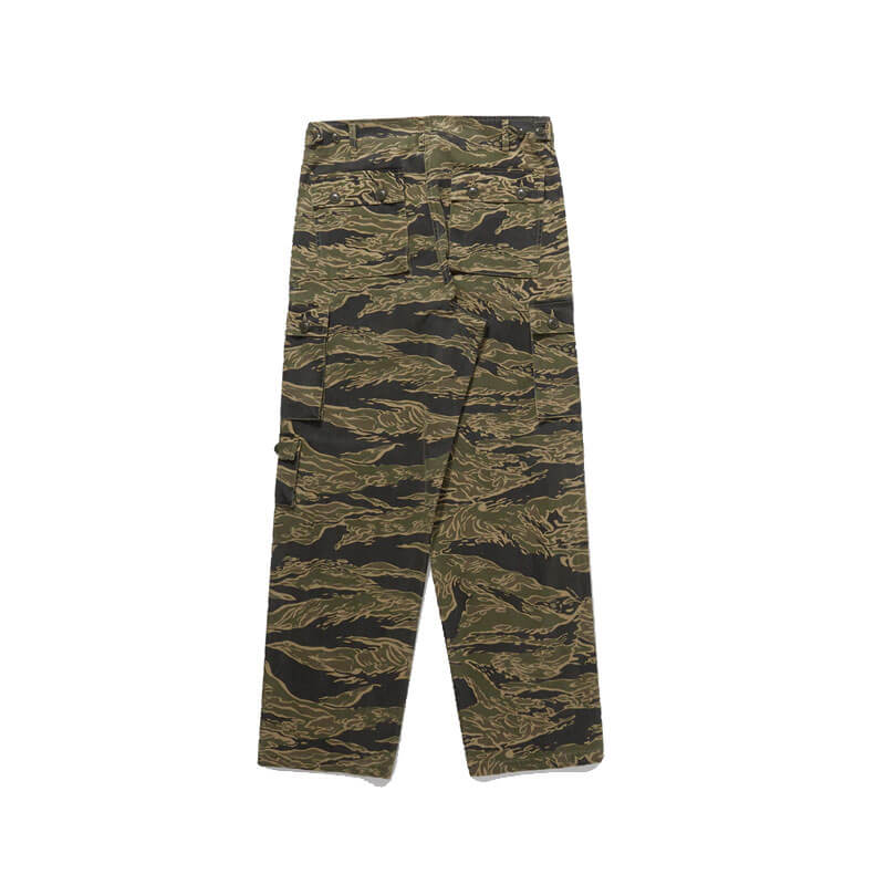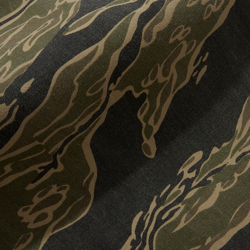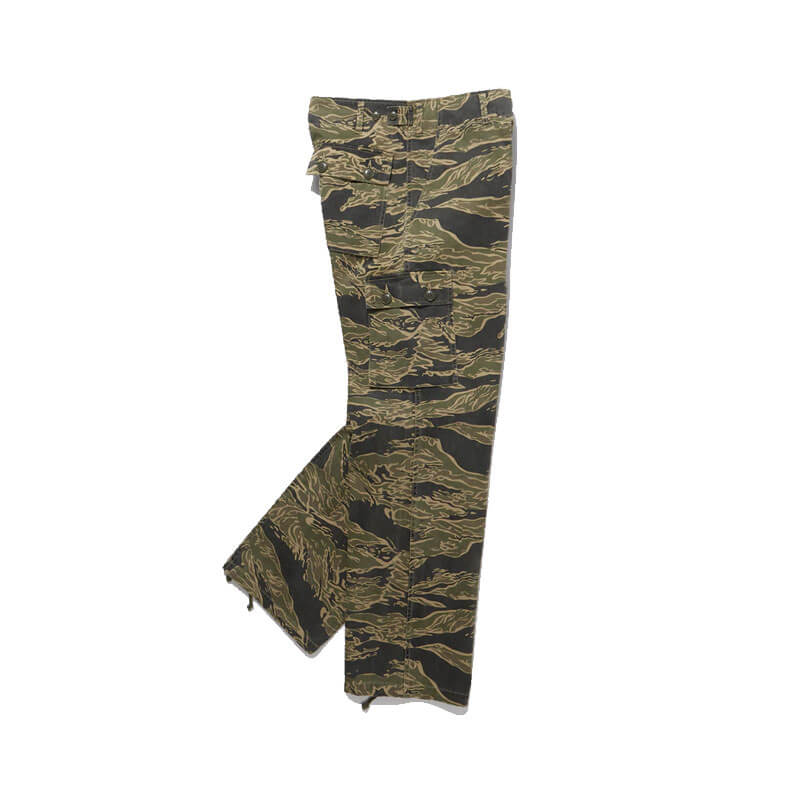 MAHARISHI Advisor’s Cargo Pants – Mint Gold Tigerstripe: Camo cargo pants are cut to a loose fit and made from a 220gsm DPM: Tigerskins cotton twill. Referencing the uniforms of the Vietnam war, U.S. advisors and special forces would employ local tailor shops to refashion their U.S. issued uniforms from the grailed Vietnam Tigerstripe camo as a sign of solidarity.
