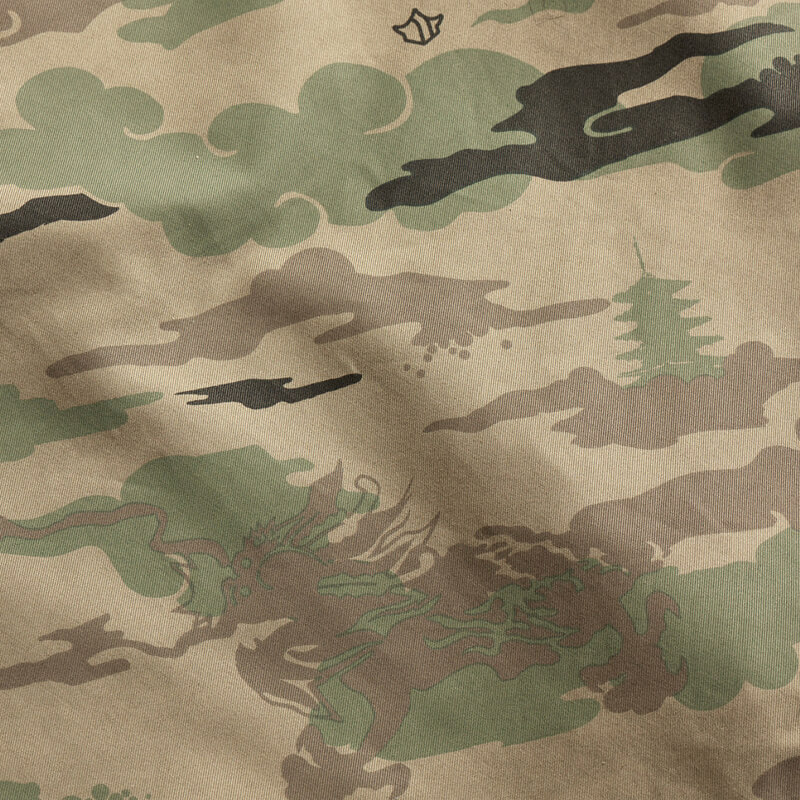 MAHARISHI Camo Modified M65 Jacket – Woodland: M65 Field Jacket in DPM: Bonsai Forest -Maharishi’s house pattern ‘Bonsai Forest’ incorporates symbols of peace and nature such as bonsai trees growing from heavenly clouds, as well as the dragon, representing man’s spiritual journey and quest for the pearl of wisdom-.