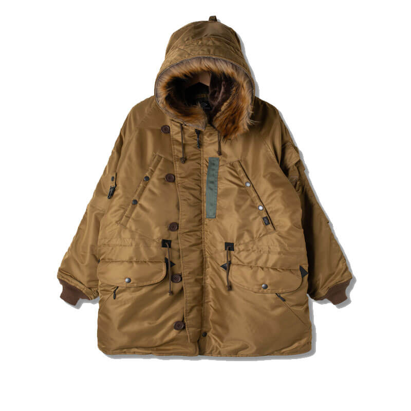 MANASTASH Extra Mile N-3 Field Coat – Tan: Besides pioneering its sustainable hemp fabrications, Manastash also crafts functional outdoor gear like the Extra Mile Coat. This N-3 jacket is inspired by vintage flight jacket featuring classic details of this field coat as faux fur trim hood and multiple pockets. Included in the last Fall-Winter23 delivery, this MANASTASHÂ Extra Mile N-3 Field Coat – Tan features: