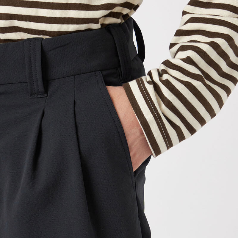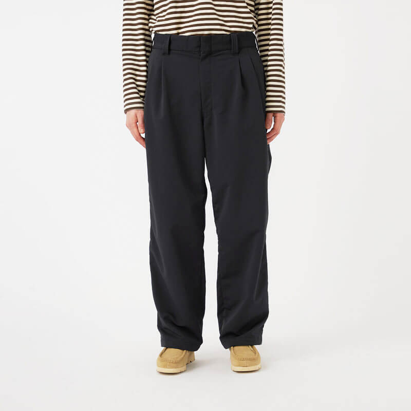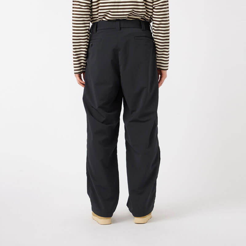 NANAMICA ALPHADRY Club Pants – Black: Wide straight-cut two-tuck pants made with ALPHADRY®, featuring excellent moisture-wicking, quick-drying, and stretch properties.