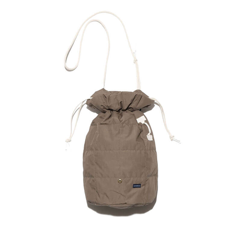 NANAMICA Cross Body Duffel Bag – Khaki Beige: This Duffel Bag offers a sleek, functional design, perfect for both daily use and short trips. Combining premium materials with minimalist aesthetics, this versatile bag can be worn across the body or carried by hand, making it ideal for an active, modern lifestyle. Crafted with KODENSHI® down insulation, the bag is constructed using quilting with two layers of fabric, making it lightweight and durable. The outer surface is made from a lightweight weather-resistant fabric woven from a blend of 65% polyester and 35% cotton at high density, while the inner lining is made from polyester ripstop material.