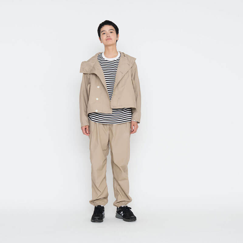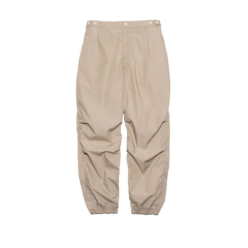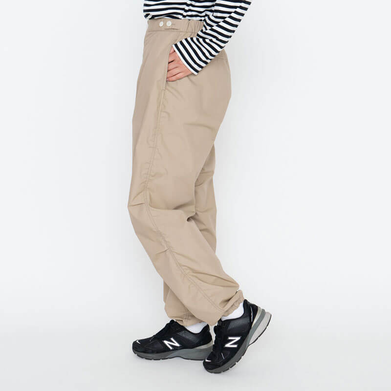 NANAMICA Deck Pant – Sand Beige: Long pant with a design that combines elements of track pants and cotton slacks. Crafted in a high density weave weather cloth of 65% polyester and 35% cotton yarn mixed yarn, which is a material traditionally used for classic outdoor wear. Also is a sustainable material using recycled polyester and organic cotton, surface with non-fluorine water-repellant finish.