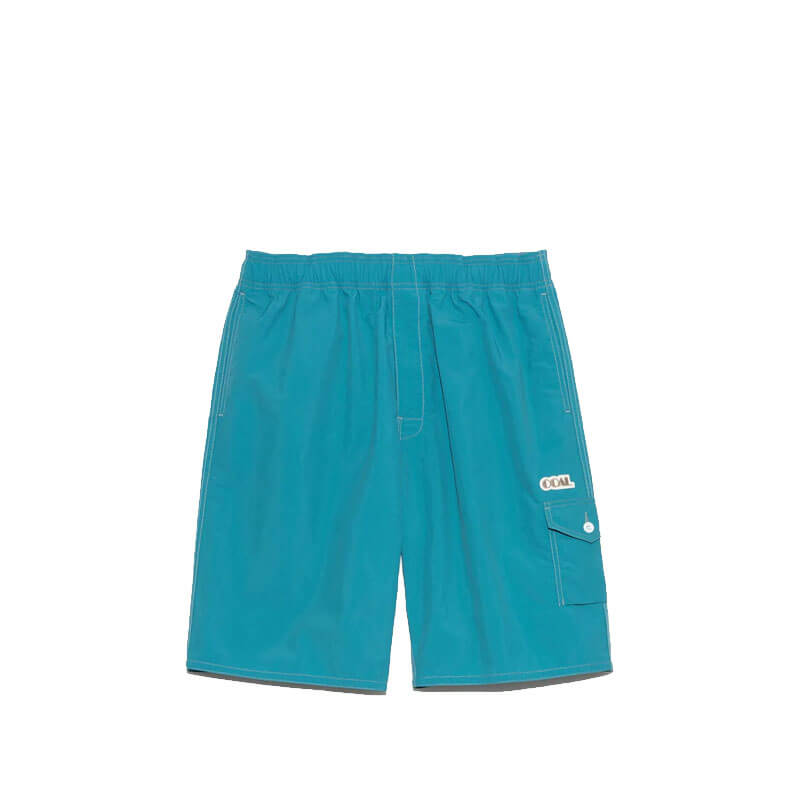 NANAMICA Deck Shorts – Coral Green: Wide-cut deck shorts made with Supplex nylon, a lightweight and supple texture similar to cotton, and finished with a non-fluorine water repellent treatment. Designed based on board shorts from the 1990s, and featuring a small flat pocket on side.