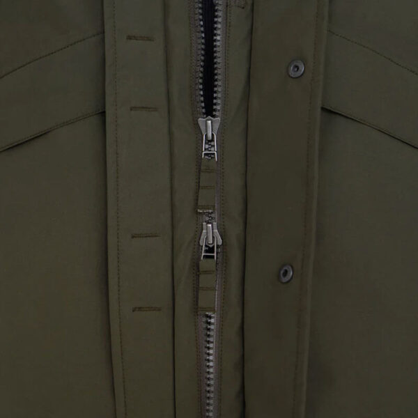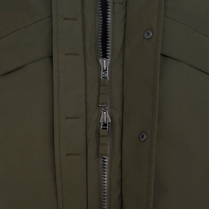 - Zipped closure with placket and dot buttons