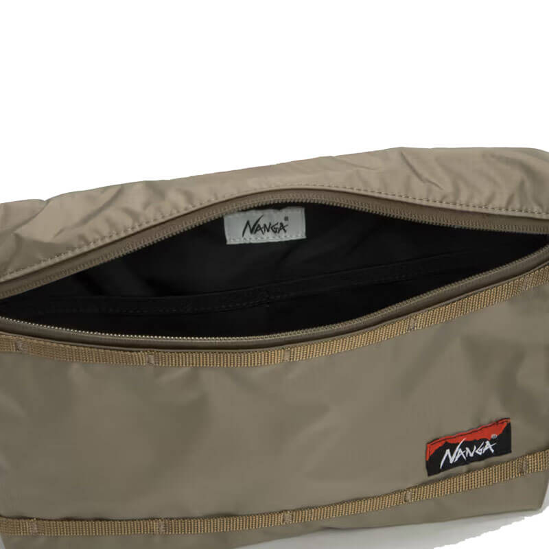 NANGA Aurora Sacoche – Coyote: A sacoche bag made with waterproof and breathable material. This simple shoulder bag features Nanga’s logo to accentuate the look and a daisy chains at the top and bottom of the bag for your carabiners and other gadgets. Made in Japan and crafted in Aurora Tex Nylon.