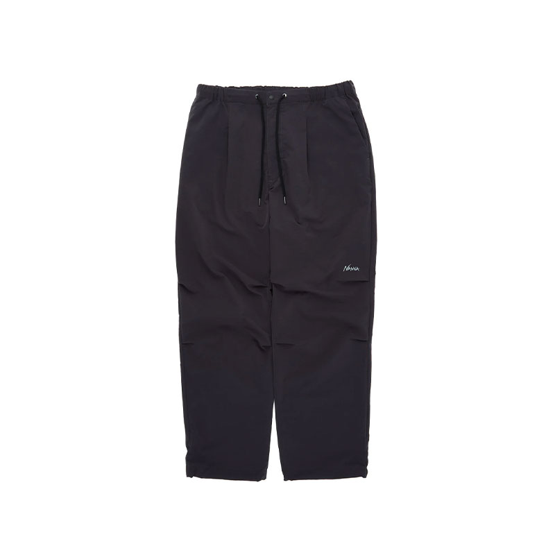 NANGA DotAir® Comfy Pant W – Black: These women’s wide pants are made from DotAir®, a highly functional material that is both breathable and sweat-wicking and quick-drying. The special weave structure creates air holes, making them less stuffy and keeping you cool and comfortable even on hot days. They are also stretchy, making them suitable for a variety of situations, including light hiking, camping, and around town use. The entire waist is elasticated, so it is comfortable to wear without feeling tight. The high waist, vertical silhouette, and tucked design naturally create a beautiful leg effect. There is room around the hips, so it is easy to move around. The five pockets on the waist, hips and sides are extremely practical. In addition, the hem has a drawstring so you can adjust the length and silhouette. The side pockets have tabs to add an outdoor feel.