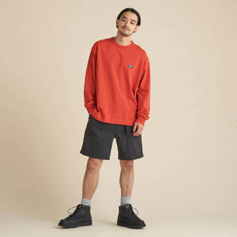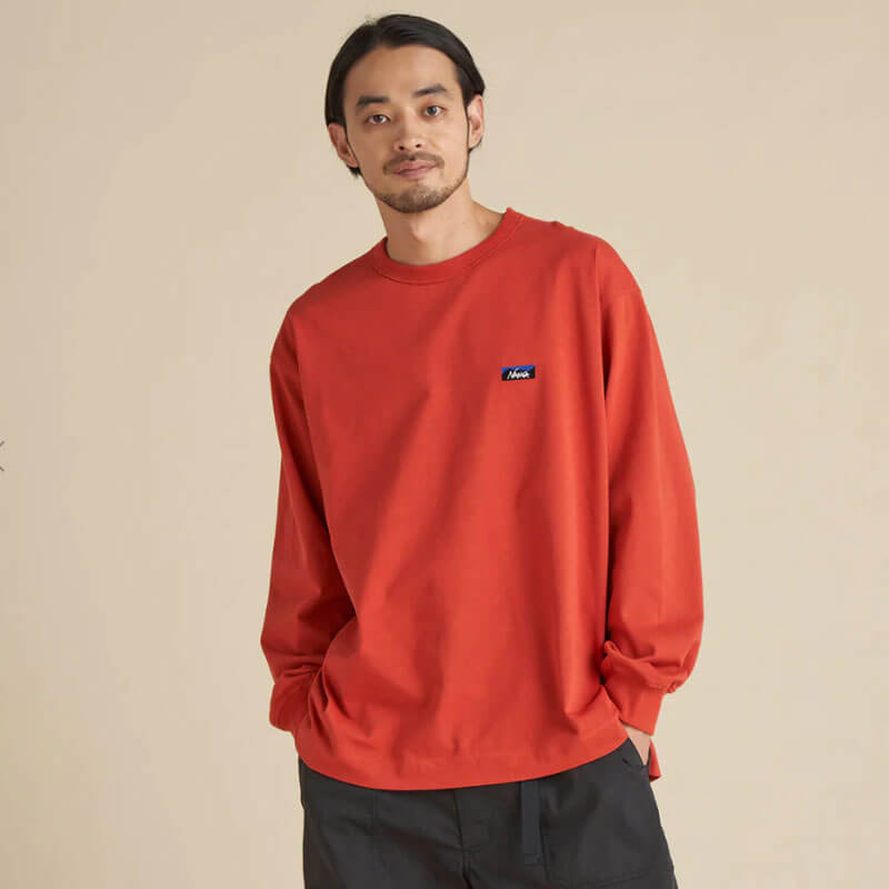 NANGA Eco Hybrid Box Logo Embroidery LS Tee – Orange: A long-sleeved tee with the perfect accent of the embroidered NANGA box logo. Although it is simple, is a long-sleeved tee with attention to detail. The size is a moderately relaxed regular fit. In addition, subtle but well-thought-out tailoring details featuring underarm gussets for greater mobility.