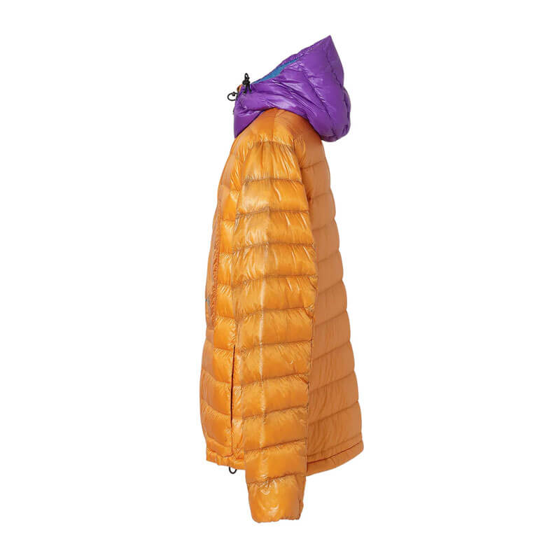 NANGA Ultilight Packable Down Parka – Orange: Lightweight and warm. Packable down jacket perfect for travel and everyday use, and its lightweight design, warmth, and packability make it easy to carry. The down is filled with just the right amount of down, and the quilt width is adjusted to match the amount of down, minimizing “cold spots” that allow cold air to get in. It’s warmer than it looks, and works well as an outer layer in autumn and winter, or as an inner down in the middle of winter.