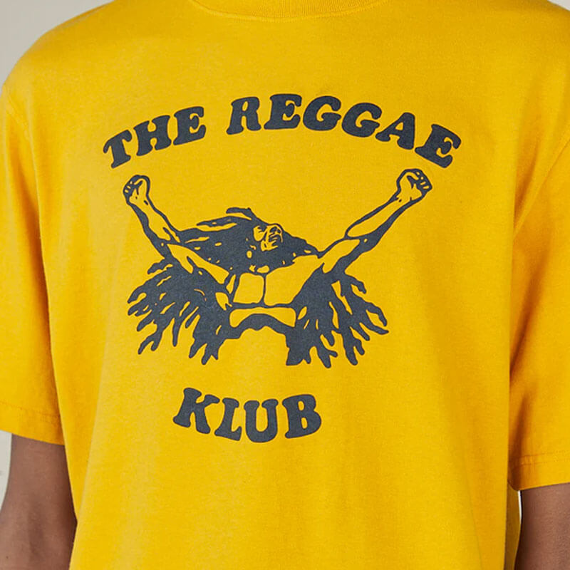 NICHOLAS DALEY Reggae Klub Tee – Mustard: The Reggae Klub Tee is made in 100% cotton single jersey and crafted in Portugal. A Nicholas Daley classic, this tee features the iconic ‘The Reggae Klub’ graphic printed on the chest, reissued this season in a rich Mustard yellow. A perfect everyday staple, it’s ideal for layering or wearing solo. Bringing a touch of music heritage and graphic boldness to your look.