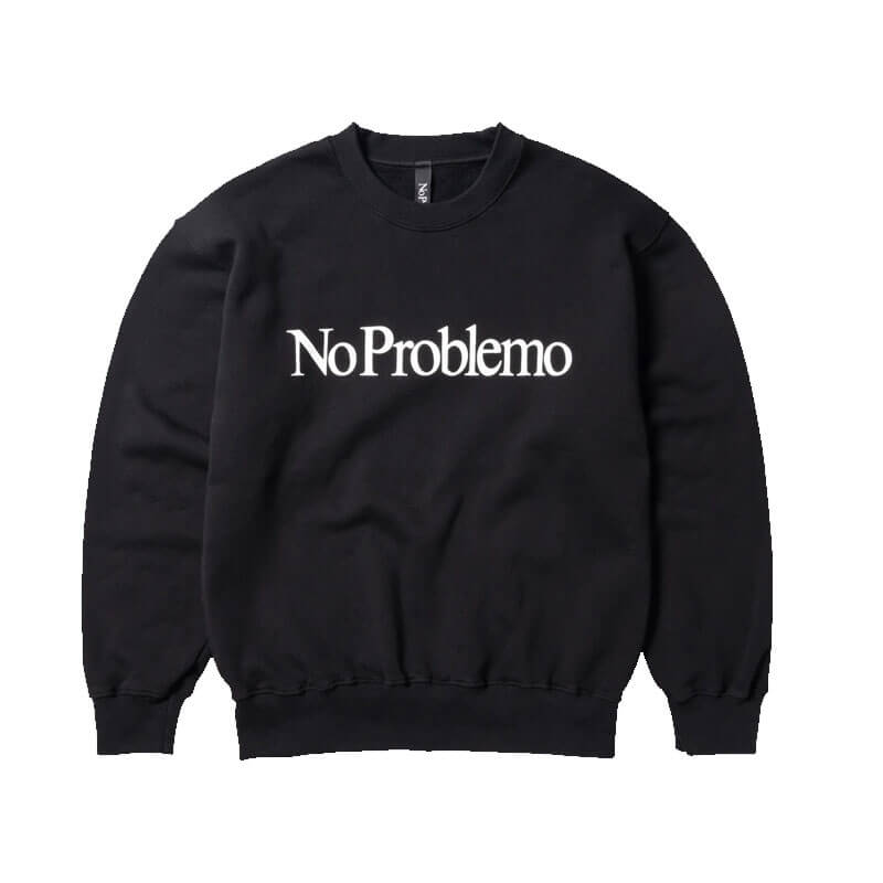 NO PROBLEMO No Problemo Sweatshirt – Black: Unisex crewneck sweatshirt made brushed-back jersey fleece. Featuring Mini No Problemo screen-printed graphic logo on chest.