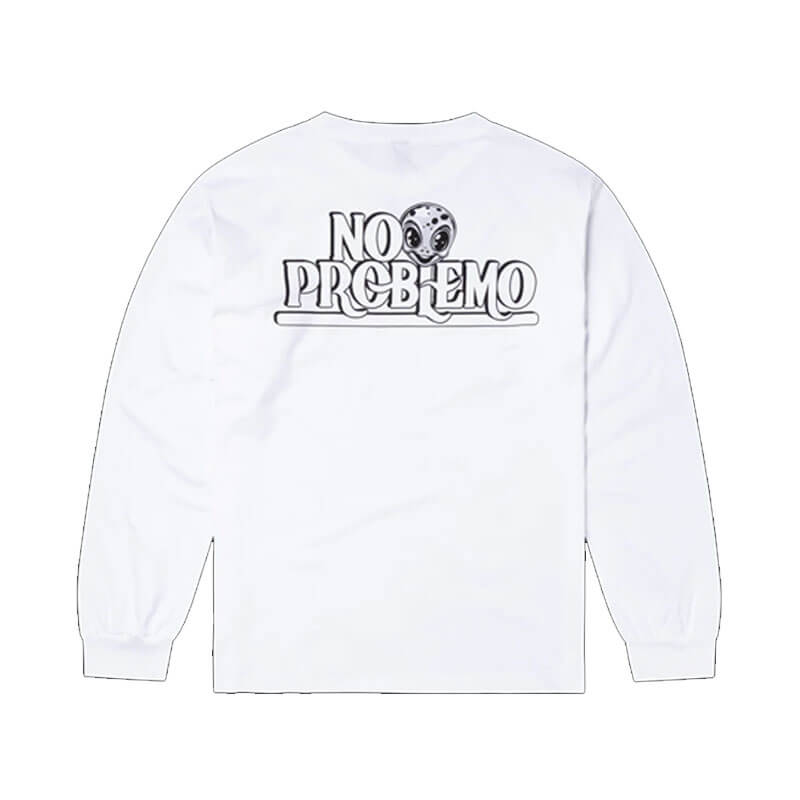 Included in the last Fall25 delivery, this NO PROBLEMO Stickers LS Tee – White features: