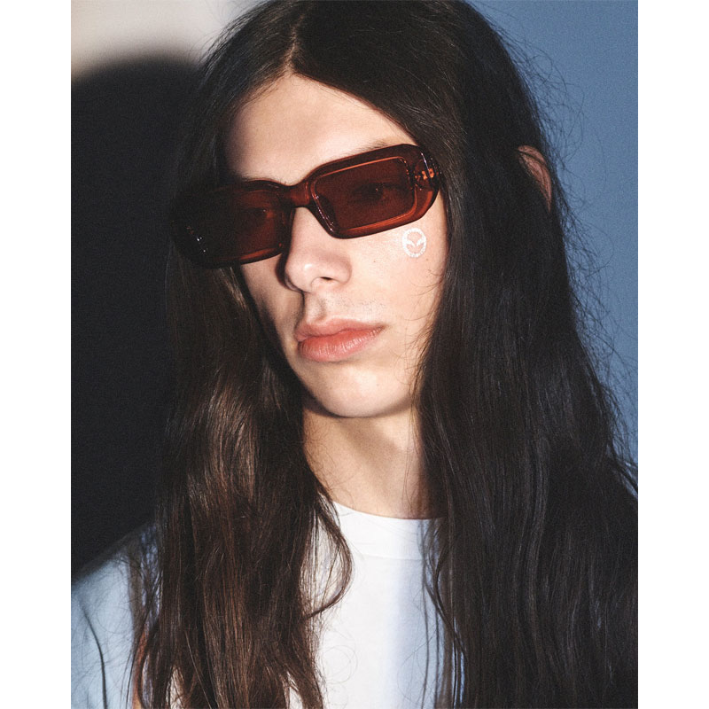 NO PROBLEMO x LE SPECS Blackpool Sunglasses – Cocoa / Brown Mono: Designed with a contemporary rectangular shape, the blackpool sunglasses are designed with narrow proportions and wide fit for all face sizes. this unisex frame features soft bevelled details and sleek tapered temples and is finished with No Problemo logo print to temple.