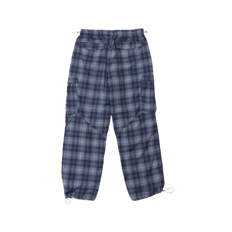 NOON GOONS Interlude Cinch Pant – Slate: Plaid cargo pants popped with ample roomy pockets and drawcords at the elastic waist and hems for the perfect fit. This NOON GOONS Interlude Cinch Pant – Slate is part of the last FW23 collection and equipped with: