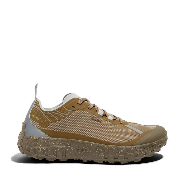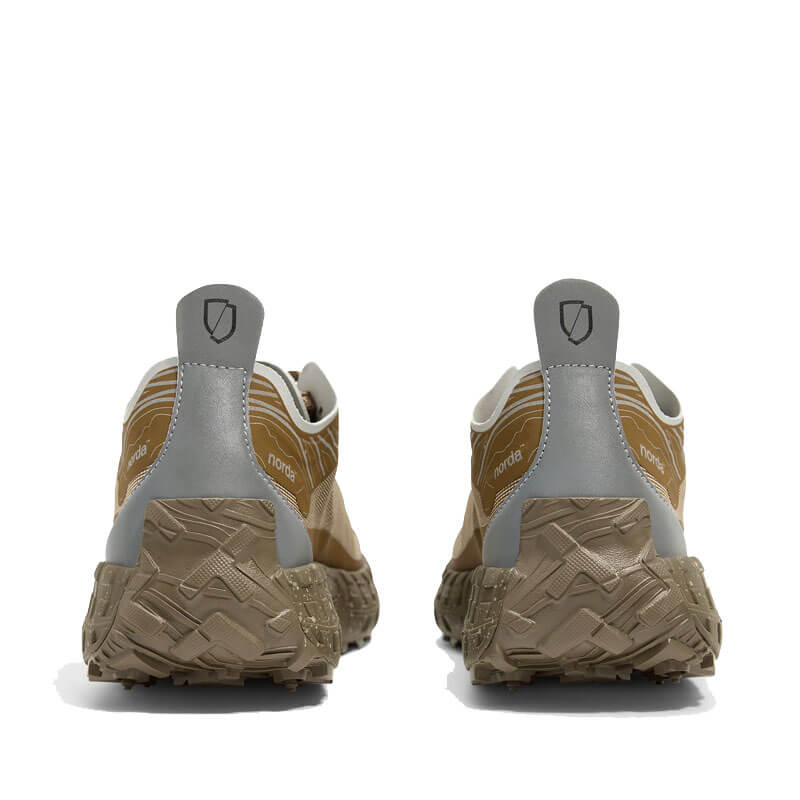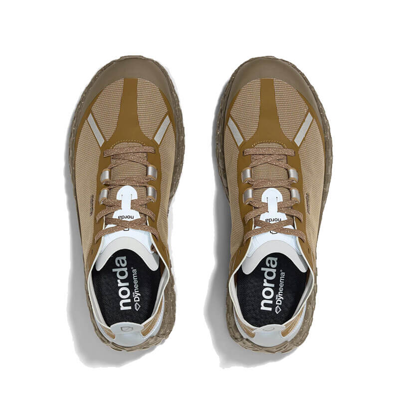 NORDA The 001 – Loam: The 001A is engineered with the lightest and strongest materials for mindless comfort on mindful pursuits. Optimally-cushioned ultra distance shoe equipped with a proprietary Arnitel® TPEE midsole that demonstrates benchmark resiliency, strength and mechanical property retention, along with the world’s first seamless Dyneema® upper and an exclusive Vibram® soleplate for unparalleled performance and durability.