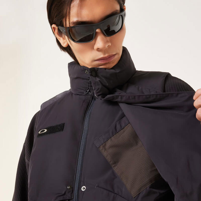 OAKLEY FGL Red Code Vest 5.7 – Phantom: Exceptional insulation and heat-retention are the standout properties of this lightweight vest that can be worn as a top layer or under a jacket to provide extra warmth in cold weather. Durable and water-repellent, it scores high on weather resistance, also providing excellent coverage around the neck so you are fully protected in adverse conditions. Regular fitting, it comes with concealed zippers on the side and front and a woven FGL logo patch at the hem.