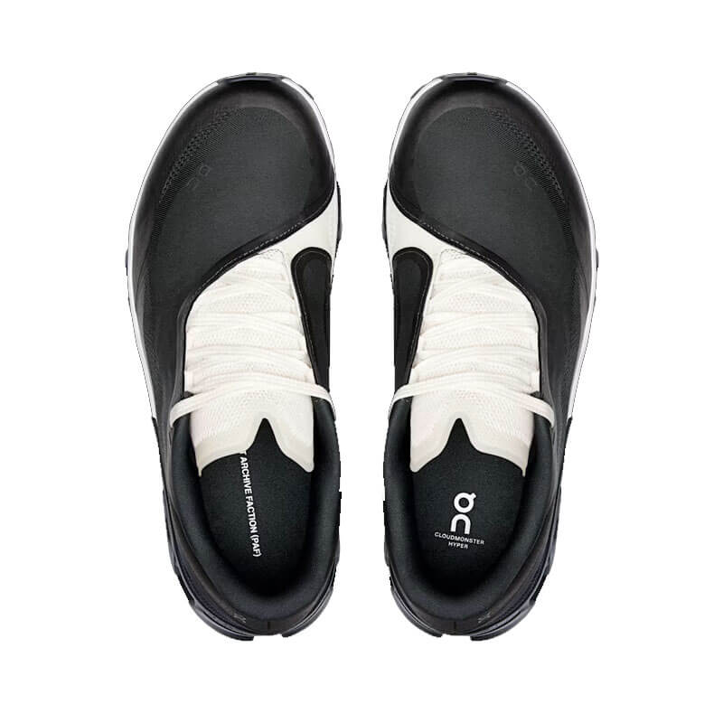 ON Cloudmonster Hyper PAF – Black / Black: The most propulsive, max-cushioned running shoe for powerful energy return. Designed by On × POST ARCHIVE FACTION (PAF).
