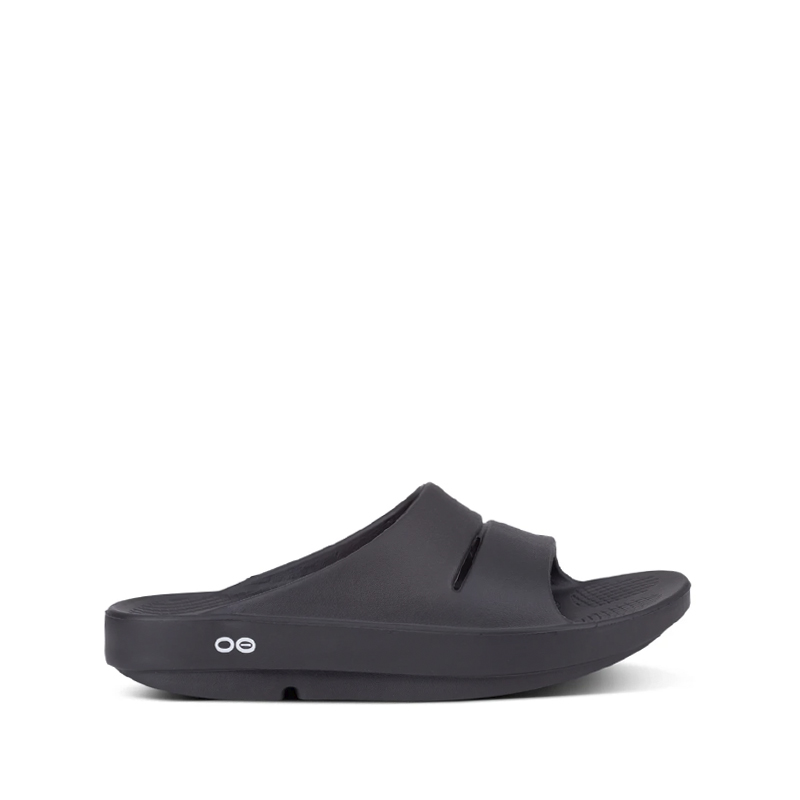 OOFOS OOahh Slide Sandals – Black: Slip-on sandal with OOfoam technology and patented footbed designed to absorb impact and cradle your arches. This combination of sleek design and revolutionary OOfoam™ recovery technology lays the groundwork for all beach-to-street flip-flop styles. This OOFOS OOahh Slide Sandals – Black features: