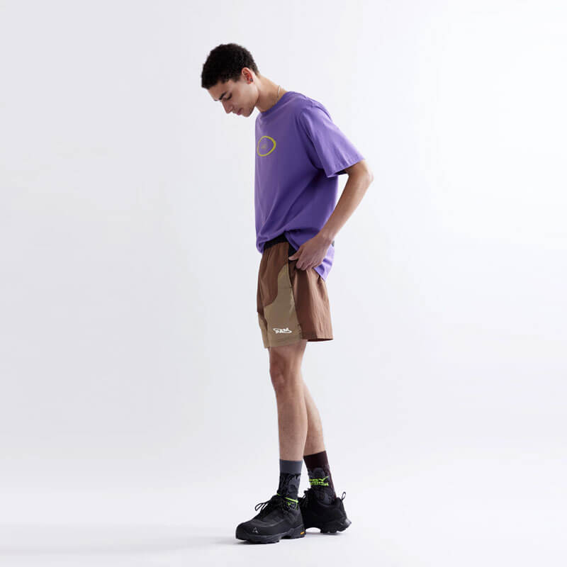 P.A.M. (Perks & Mini) Lunacy Free Wheeling Track Short – Brown: Track shorts pants with contrast panelling construction.