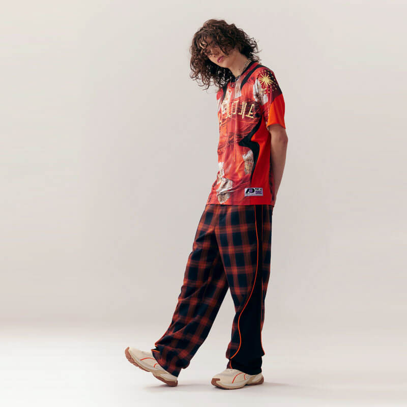 P.A.M. (Perks & Mini) Mirage Plaid Trackpant – Orange Plaid: Unisex straight leg pant with construct panelling construction. Included in P.A.M. (Perks & Mini)’s SS24 Collection, this Mirage Plaid Trackpant – Orange Plaid features: