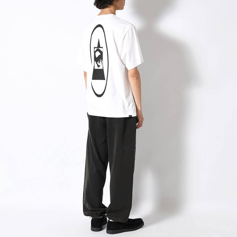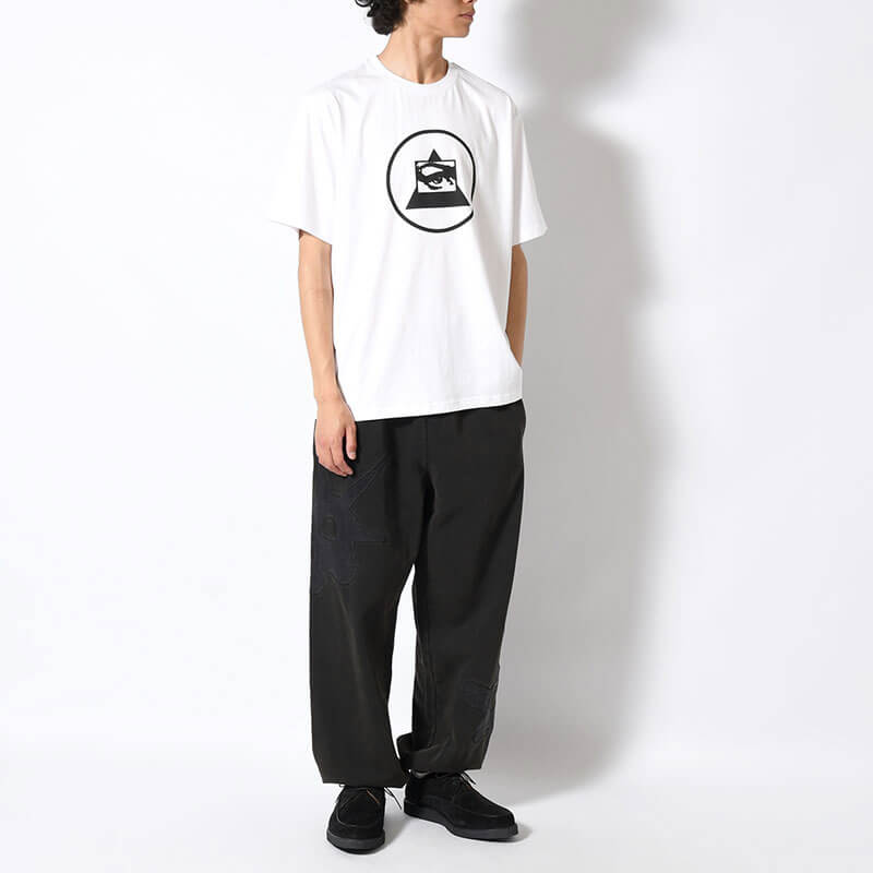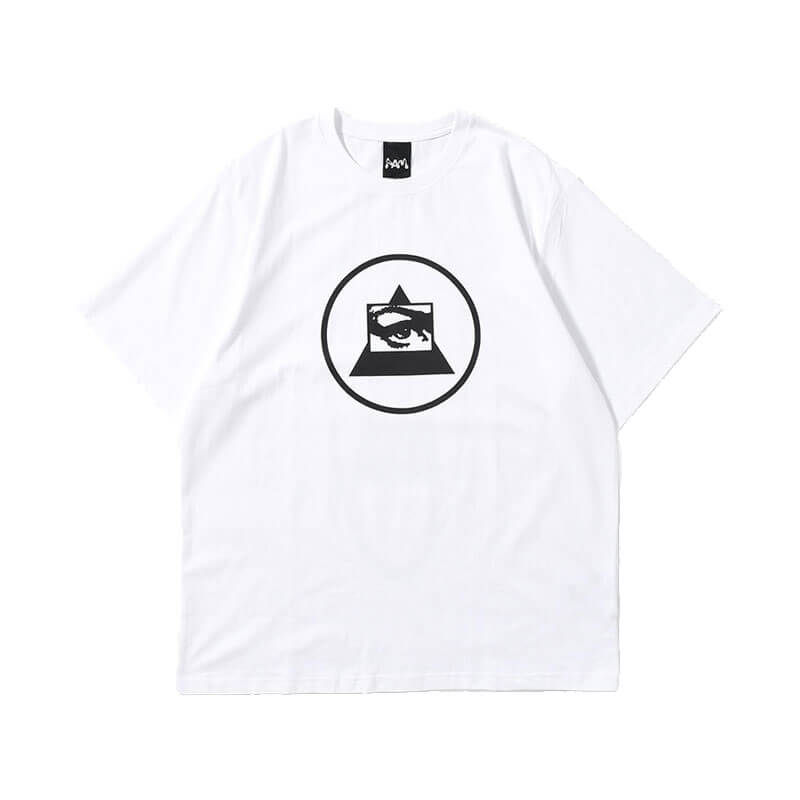 P.A.M. (Perks & Mini) Triangle Eye Tee – White: Unisex short sleeve tee with classic P.A.M. fit, featuring digital print on front.