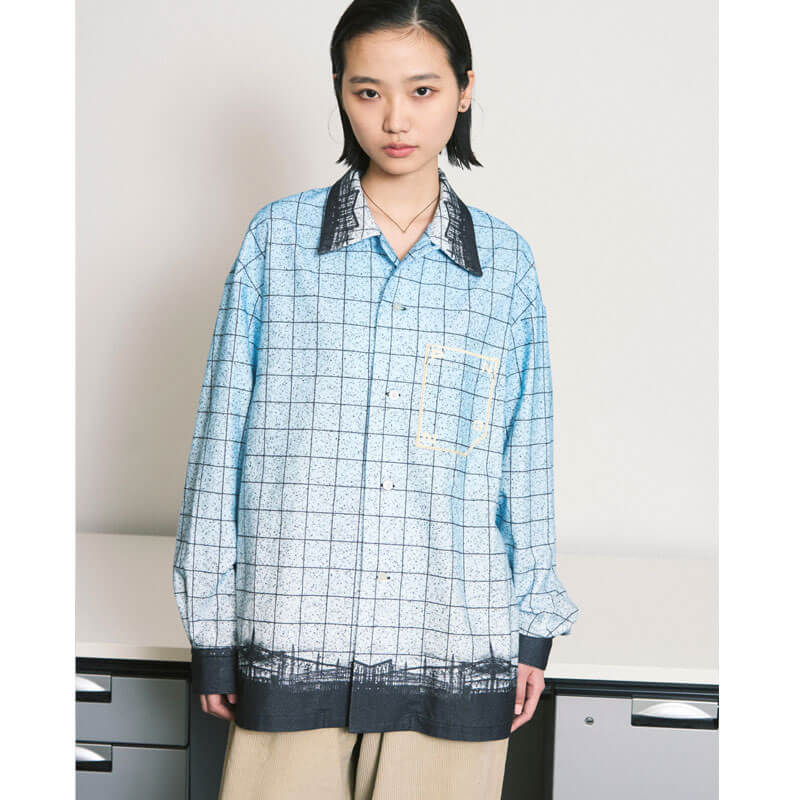 Included in the first delivery of Japanese brand at THEROOM, this PHINGERIN Flannel Open Collar Shirt – Sky features: