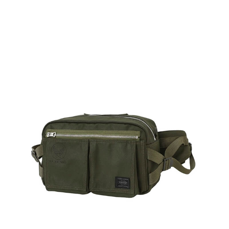 PORTER YOSHIDA & CO. Flying Ace Waistbag – Olive: Waistbag printed with a signature ‘P.Y. Air Force’ emblem at the front – a nod to the military inspiration behind the ‘Flying Ace’ collection. It’s been made in Japan from hard-wearing nylon and has plenty of useful pockets.