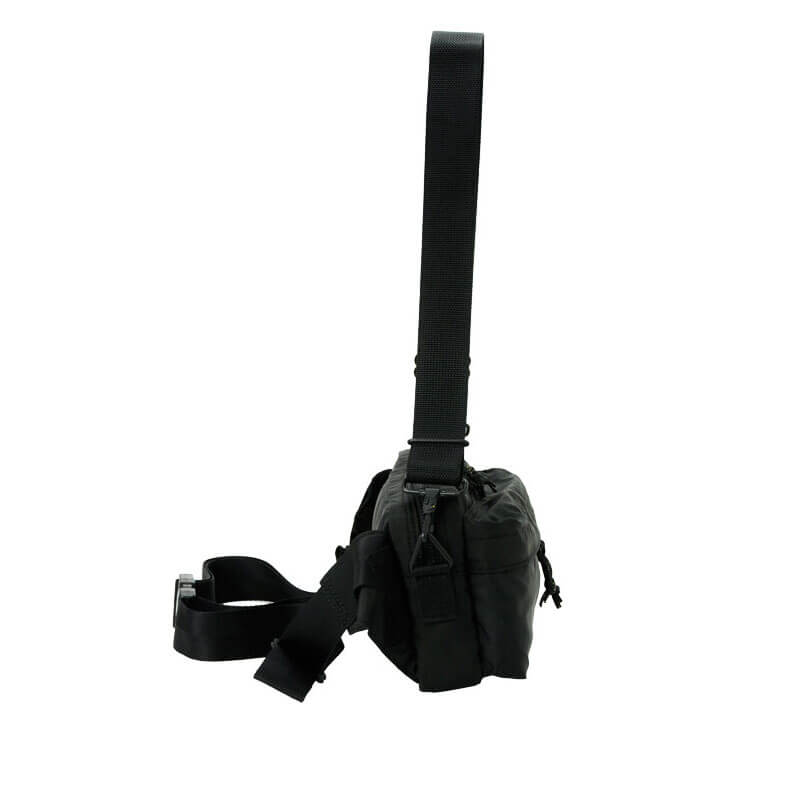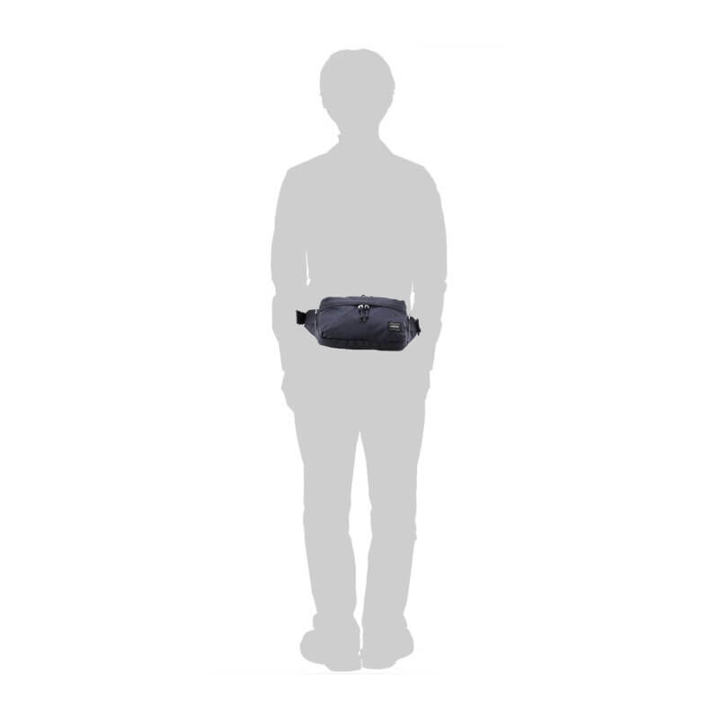 PORTER YOSHIDA & CO. Force 2Way Waist Bag – Black: Military-inspired waist bag in nylon oxford knit with acrylic coating. 210 denier 6 nylon construction.