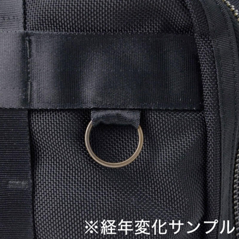 The main material is varistor nylon made in Japan woven with 66 nylon thread, which is also used for car airbags and bulletproof vests, and has excellent heat resistance, abrasion resistance, and tear strength. Some parts are made of highly water-resistant tarpaulin fabric, which is used as an industrial material. Although it is a one-tone black color, it has a stylish design with contrast by combining fabrics with different textures.
