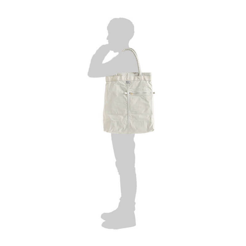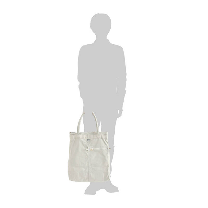 The tote bag features a vertical form that can store A3 size documents. The handle has been lengthened so that it can be easily worn over the shoulder, and cushioned material is used. Although it has a thin gusset, it has a pocket that allows you to store small items in the interior, making it an item with more storage capacity than it looks.