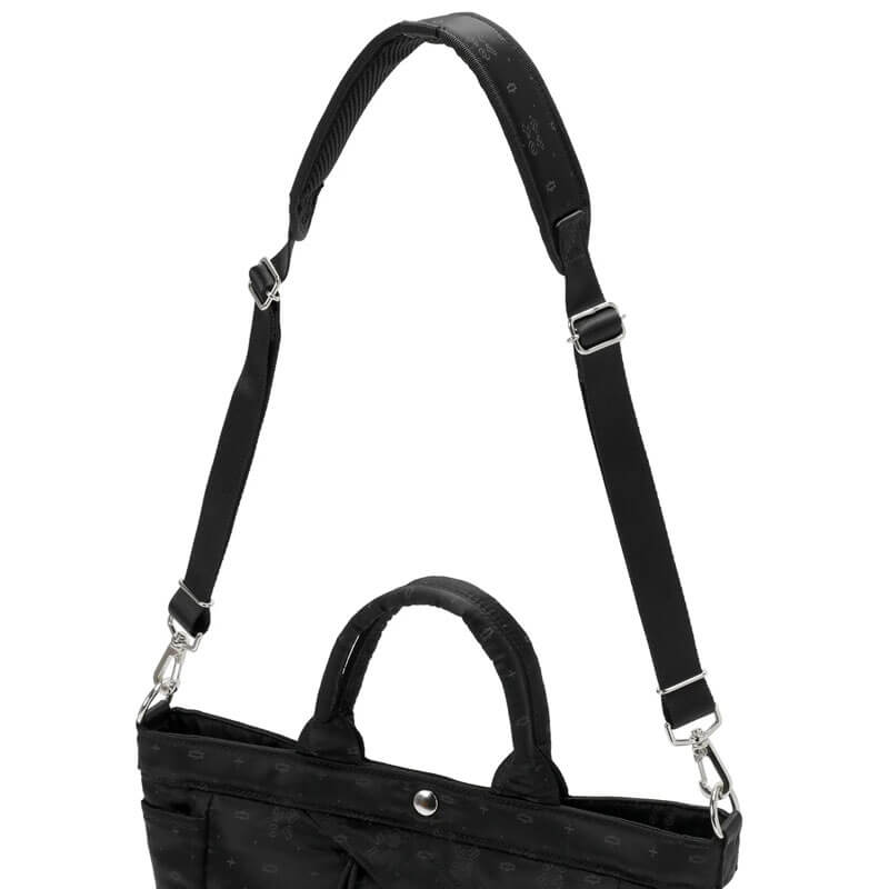 PORTER YOSHIDA & CO. Potr Monogram Tote Bag – Black: Tote shoulder bag with all-over monogram logo design. This PORTER YOSHIDA & CO. Potr Monogram Tote Bag – Black features: