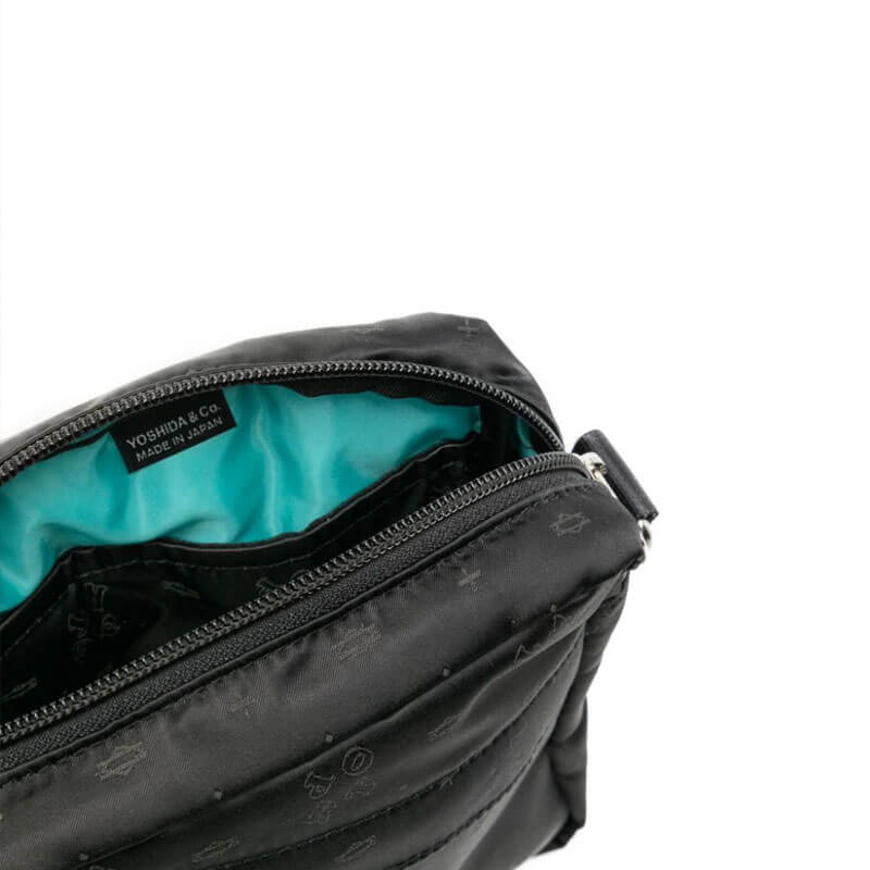 PORTER YOSHIDA & CO. Potr Monogram Vertical Shoulder Bag – Black: Small shoulder bag with all-over monogram logo design. This PORTER YOSHIDA & CO. Potr Monogram Vertical Shoulder Bag – Black features: