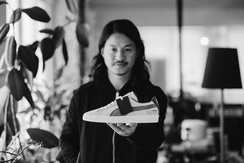 The godfather of urban vinyl toys, Hong Kong artist Michael Lau is renowned for his collectible designer toy figures and graffiti-style illustrations. Bold and distinctive, his work bridges the gap between street culture and fine art, and it’s had an impact on everything from American hip-hop culture to international toy manufacturers. His take on the PUMA Suede appears in sleek grayscale, with asymmetrical colorblocking and Chinese characters at the tongue and heel.