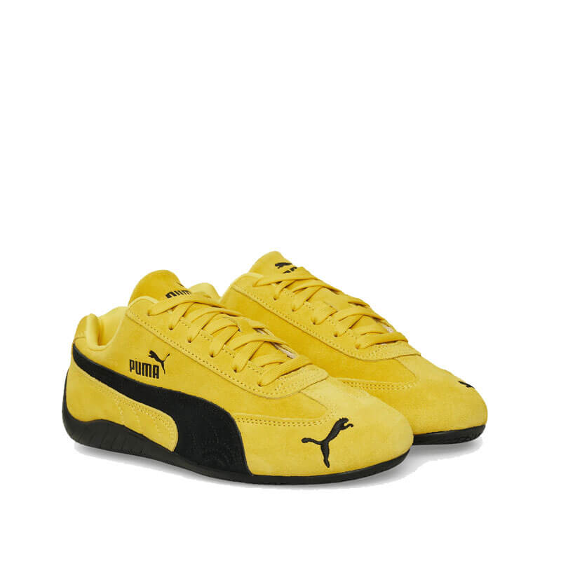 PUMA Speedcat OG – Pelé Yellow / Black: A Puma classic inspired by the speed of the racetrack: the Speedcat OG. It stands out from the crowd with its race-shoe inspired shape and sleek lines that look fast and bold. Bring motorsport to the street and own the low profile trend with this version of the iconic silhouette.