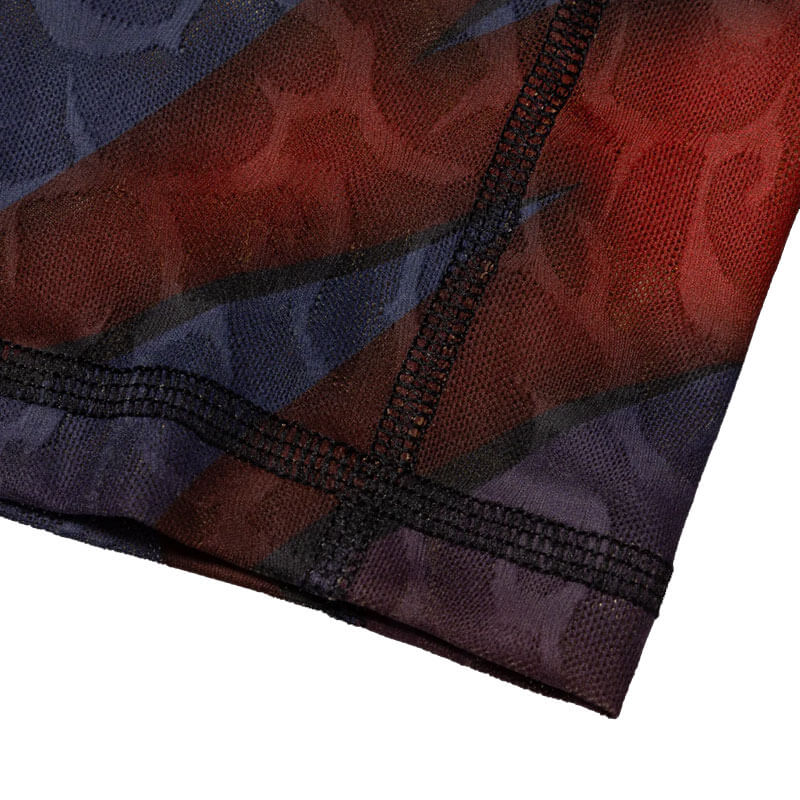Long sleeved tight to body top constructed in a tribal jacquard lace with an all over ombre spike graphic print. Featuring logo print on the left wrist and graphic logo print at the back neck as well as contrast decorative cover stitching. Designed for a tight to body fit.