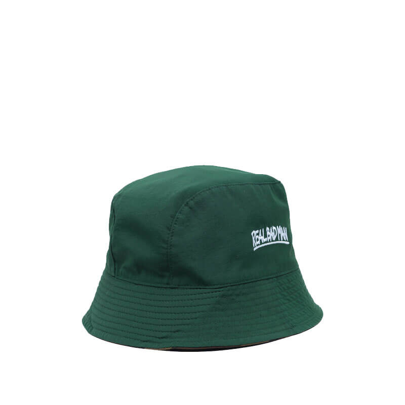 REAL BAD MAN Anti Camo Reversible Bucket Hat – Camo: Classic bucket hat with reversible design featuring branding embroidery on front. Included in FW23 collection, this REAL BAD MAN Anti Camo Reversible Bucket Hat – Camo features: