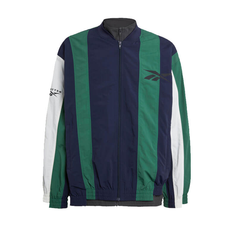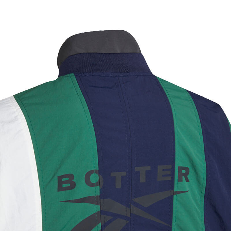 REEBOK LTD. BOTTER Paneled Track Jacket – Navy / Forest Green: Sleek nylon track jacket adorned with eye-catching panels.