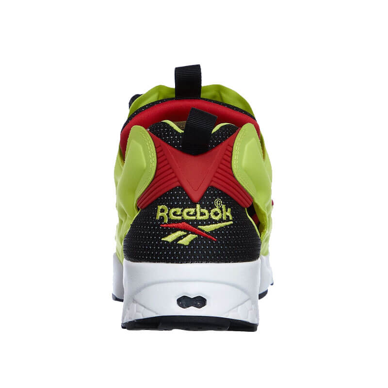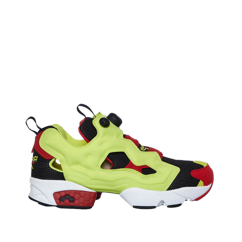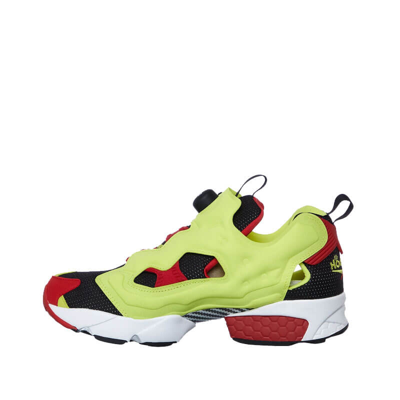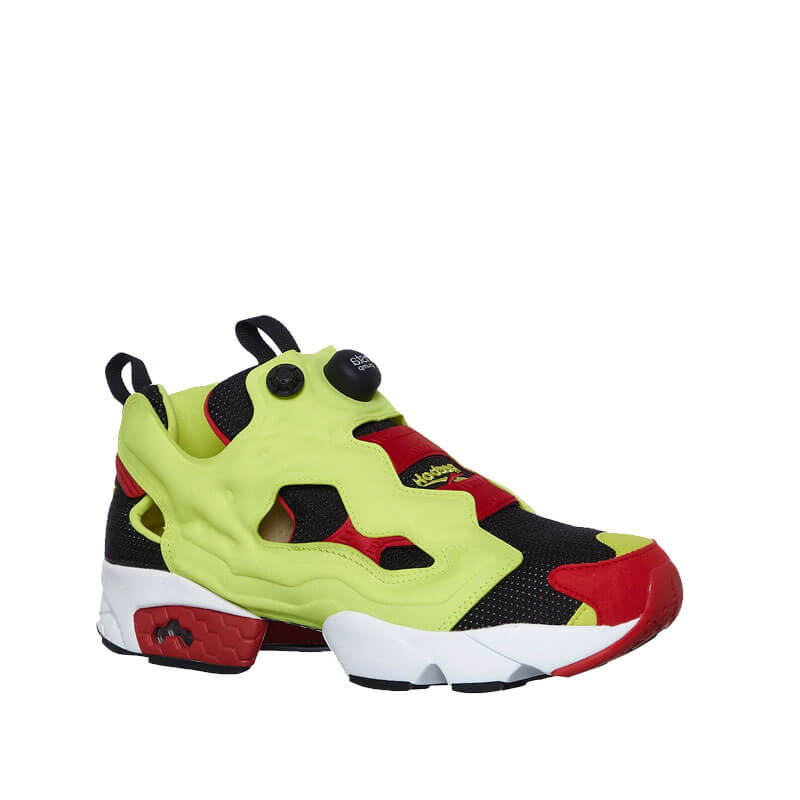 REEBOK LTD. Instapump Fury 94 – Hyper Green / Vector Red / Core Black: Straight from the archives, the Instapump Fury 94 sneaker brings the original Pump technology into the here and now. Its inflatable chamber can be adjusted using the button on the tongue to offer a supportive, customised fit, while Hexalite cushioning and a carbon fibre shank provide comfort. This futuristic design is fitted with a textile upper, cut-outs and features neutral accents.