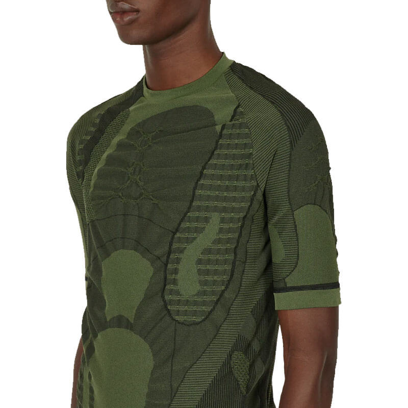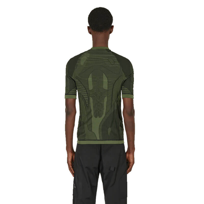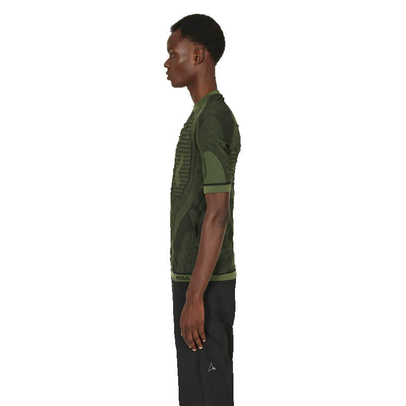ROA Hiking Seamless Tee – Green: Seamless short sleeve sweater. Contrast knit panel. Cool and comfortable technical fabric using Dryarn® fibers with good wicking abilities that is quick drying.